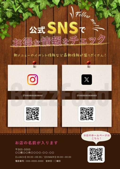 【SNS告知ポップ横並び2枠】Twitterやインスタグラムのお知らせに!ウッディ(カラー:茶・色緑)